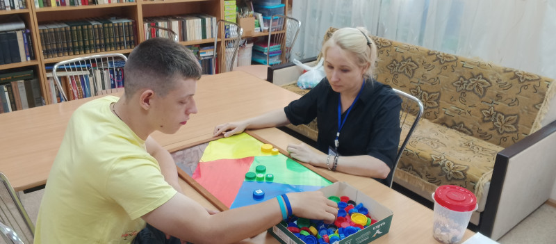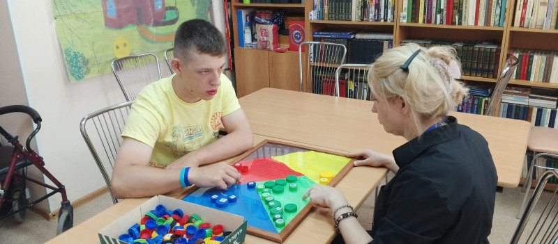 В социально-реабилитационном отделении МБУ "ЦСОН Октябрьского района г. Ростова-на-Дону" состоялось очередное занятие, направленное на развитие зрительно-моторной координации, а также общей и мелкой моторики.
