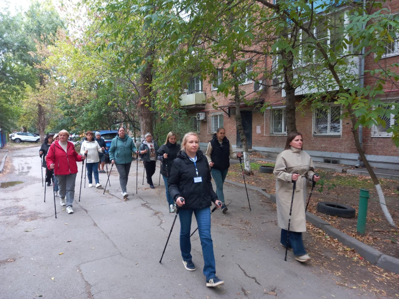 В рамках городского проекта "Время активных" в МБУ "ЦСОН Октябрьского района г. Ростова-на-Дону" прошло занятие по скандинавской ходьбе. Это мероприятие привлекло не только получателей социальных услуг, но и жителей района, стремящихся улучшить своё здоровье и повысить уровень физической активности.