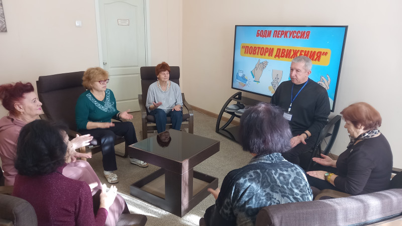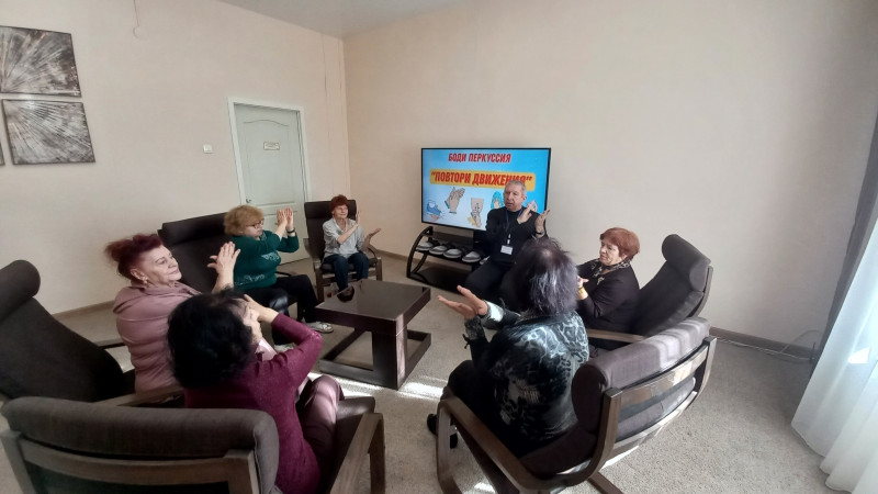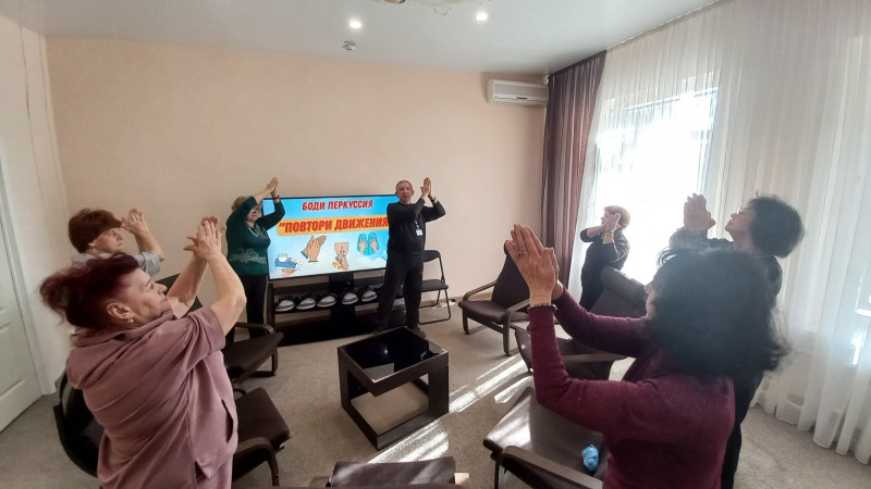 г. Ростова-на-Дону» получатели социальных услуг осваивали популярный инновационный подход в реабилитационной практике - «перкуссию тела» или «боди-перкуссию». В этой методике инструментом является тело человека. На разных его частях исполняются заданные ритмические рисунки. Это могут быть: притопывание ногами различной силы, похлопывание по коленям или шлепки одной, или двумя руками по бедрам, хлопки в ладоши раскрытыми или согнутыми «лодочкой» ладонями, щелчки пальцами. Такие упражнения помогают получателям социальных услуг буквально прочувствовать ритм всем телом, научиться выражать свое состояние звуками и движениями, способствуют развитию коммуникабельности, фантазии и импровизационности, что, в свою очередь, оказывает положительное влияние на взаимодействие с окружающим миром.