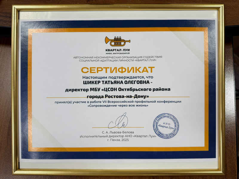 Автономная некоммерческая организация содействия социальной адаптации личности «Квартал Луи» провела VII Всероссийскую профильную конференцию «Сопровождение через всю жизнь», в которой приняла участие Татьяна Шикер- директор муниципального бюджетного учреждения «Центр социального обслуживания населения Октябрьского района города Ростова-на-Дону».