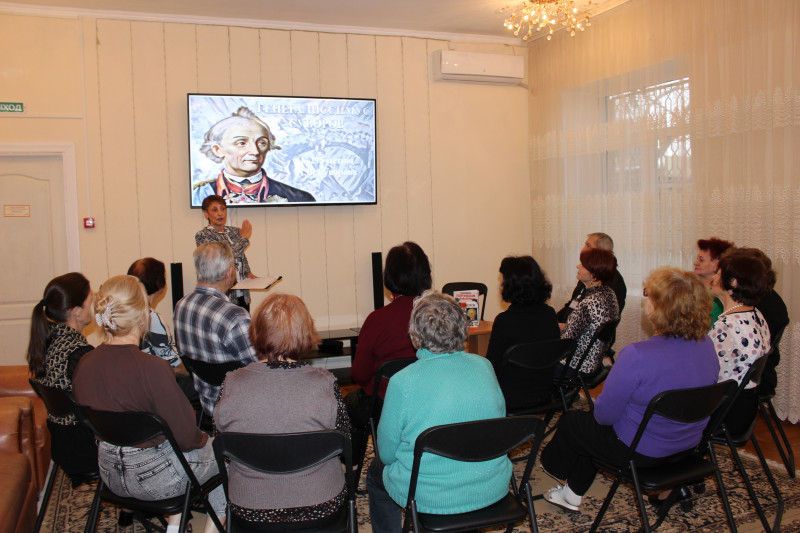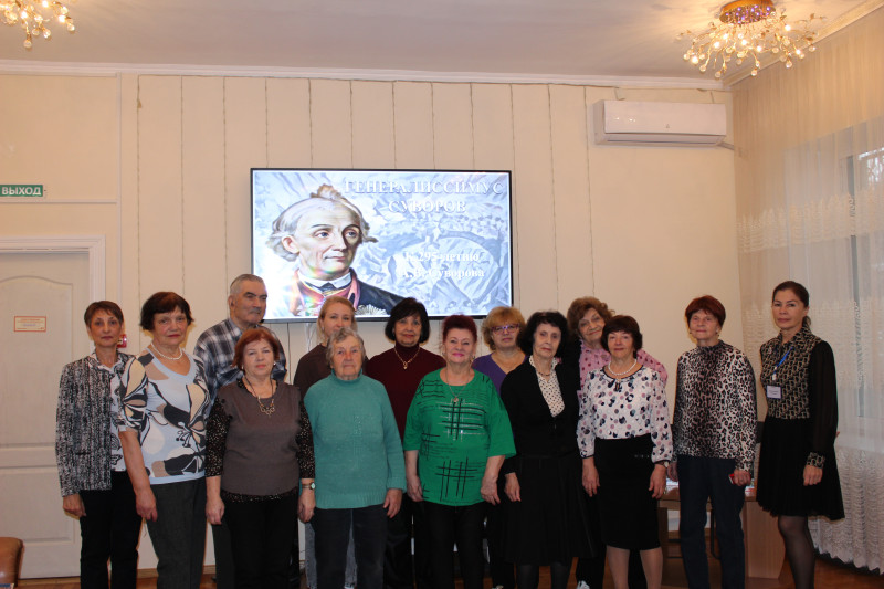 В рамках городского проекта «Время активных» в МБУ «ЦСОН Октябрьского района г. Ростова-на-Дону» прошла литературная встреча, посвященная 295-летию со дня рождения выдающегося русского военачальника Александра Васильевича Суворова.