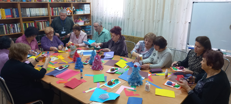 В рамках городского проекта «Время активных» в МБУ «ЦСОН Октябрьского района г. Ростова-на-Дону» в творческой мастерской «Мастерская творчества и вдохновения» прошёл замечательный мастер-класс, на котором получатели социальных услуг и жители района вместе создавали новогодние открытки и декоративные ёлочки. Это мероприятие стало отличной возможностью для участников проявить своё творчество, зарядиться праздничным настроением в преддверии Нового года. Все работы получились яркими и оригинальными, а атмосфера в мастерской - тёплой и дружелюбной.