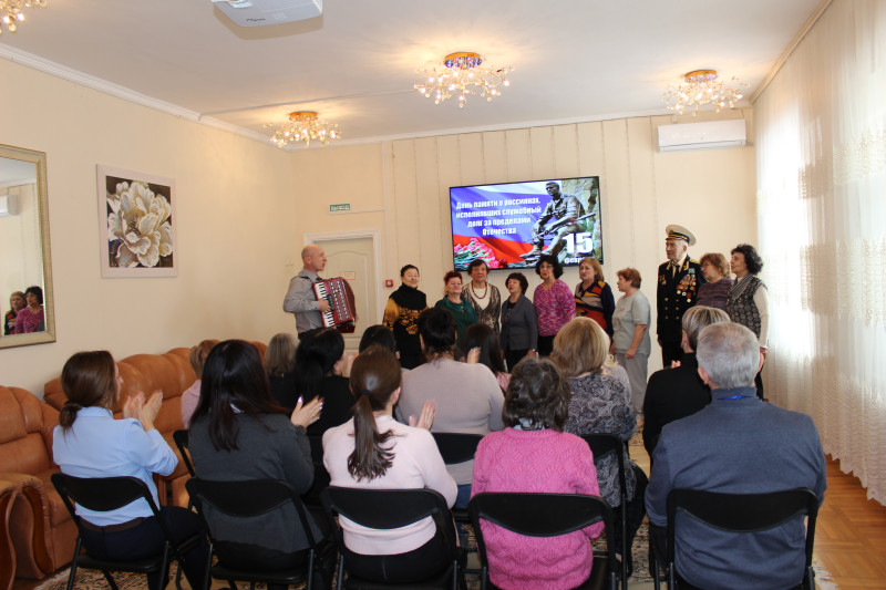 Сотрудники Центра социального обслуживания Октябрьского района города Ростова-на-Дону и жители района стали зрителями трогательного концерта «Звезды доблести над чужой землей». Мероприятие, организованное в рамках городского проекта «Время активных», было приурочено ко Дню памяти о россиянах, исполнявших служебный долг за пределами Отечества. Талантливые участники музыкальной гостиной подготовили программу из патриотических песен, чтобы выразить свое уважение и почтить память героев.