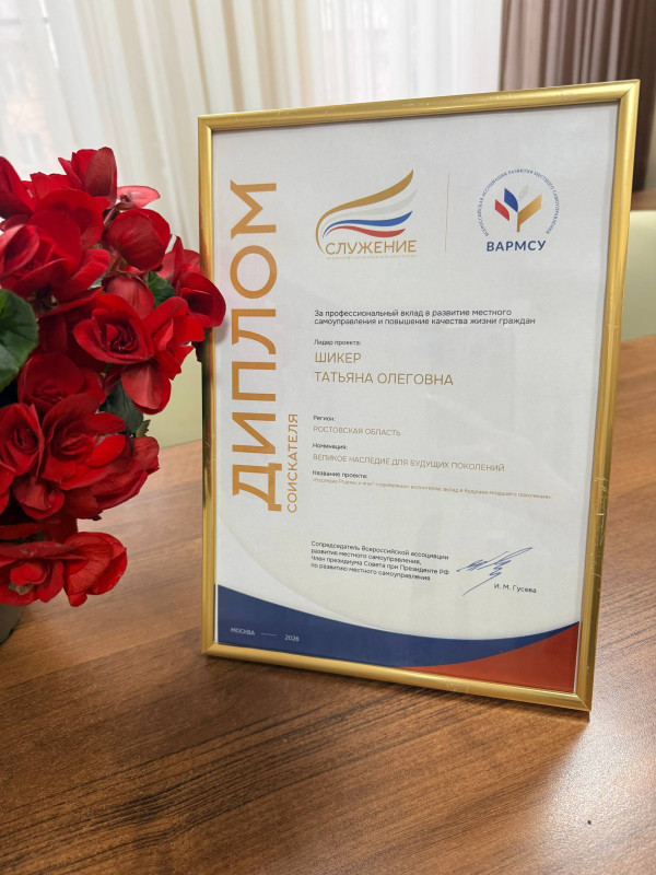 Лидер проекта: Татьяна Олеговна Шикер, была удостоена диплома соискателя Всероссийской муниципальной премии «Служение» в номинации «Великое наследие для будущих поколений».