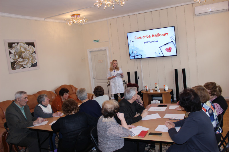 В рамках городского проекта «Время активных» в МБУ «ЦСОН Октябрьского района г. Ростова-на-Дону» была проведена интеллектуально - развлекательная медицинская викторина под названием «Сам себе Айболит». Получатели социальных услуг и жители района собрались проверить свои знания и узнать что-то новое в области медицины.
