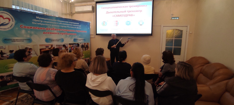 Сегодня в МБУ «ЦСОН Октябрьского района г. Ростова-на-Дону» в рамках проекта "Время активных" состоялось очередное открытое занятие для жителей района и получателей социальных услуг, в ходе которого они узнали о важной роли углекислого газа (СО2) в жизнедеятельности организма человека.