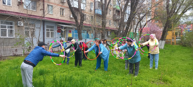 В рамках городского проекта «Время активных» на прилегающей территории к Центру социального обслуживания населения Октябрьского района города Ростова-на-Дону собрались жители района и получатели социальных услуг, чтобы провести время с пользой и заняться спортом. В солнечную погоду участники с удовольствием упражнялись с обручами, поддерживая активный образ жизни и укрепляя здоровье. Такое мероприятие стало отличной возможностью для общения, совместного отдыха и повышения физической активности среди разных возрастных групп.