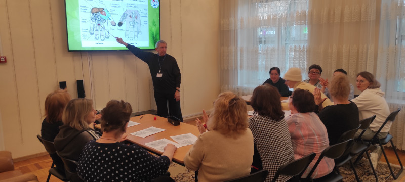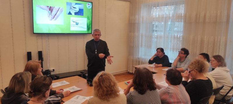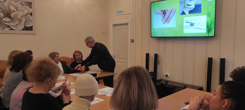 В ходе занятия специалист по реабилитационной работе социально-реабилитационного отделения рассказал слушателям об основных принципах этого направления рефлексотерапии, о существующих связях между внутренними органами тела человека и определёнными точками и зонами на руках и ногах, о способах воздействия на них.
