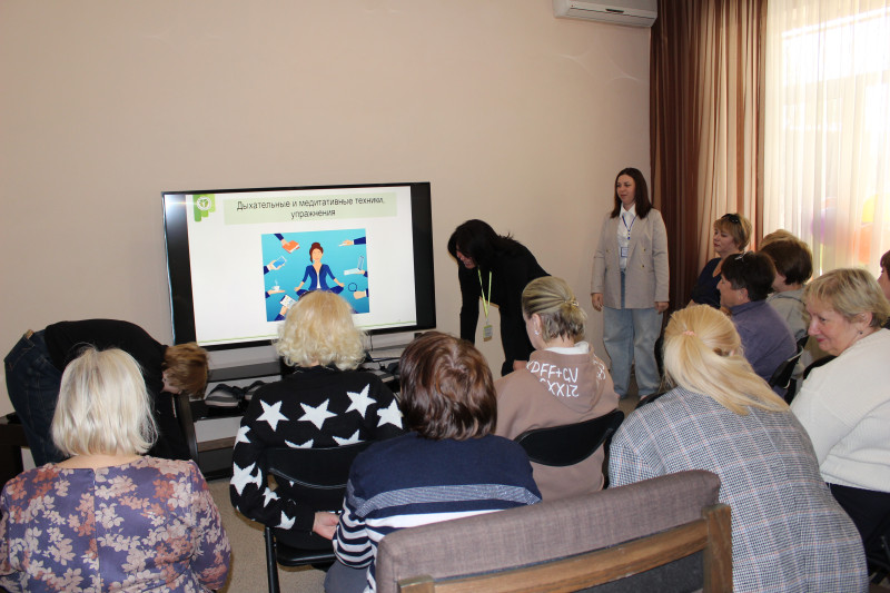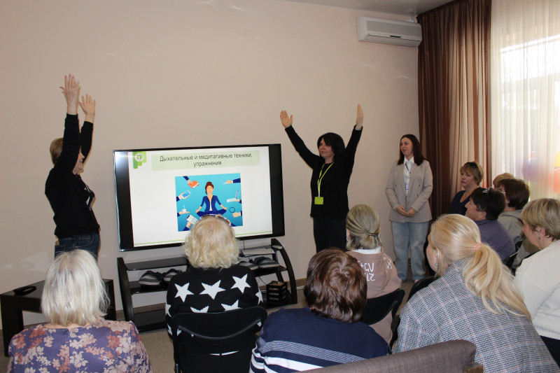 28 апреля, в рамках Всемирного дня охраны труда, в Центре социального обслуживания населения Октябрьского района города Ростова-на-Дону состоялся тренинг, посвящённый методам борьбы со стрессом. Вместе с психологом сотрудники Центра познакомились с различными техниками, включая дыхательную гимнастику, упражнения на мышечное расслабление и способы снижения эмоционального напряжения.